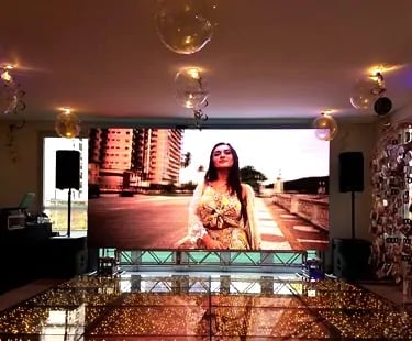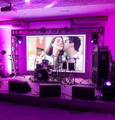Imagens e vídeos são exibidos nos telões do evento